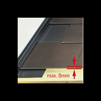 Natural or composite slate. For installing roof window into slate up to 8mm thick in roof pitches from 15º - 90º. Not for interlocking slate or thatch.